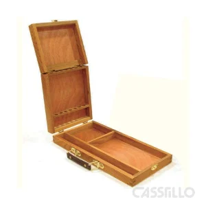 La Caja Caballete Sobremesa D26, fabricada en madera de haya aceitada, es una solución práctica y elegante para artistas que trabajan en espacios reducidos.