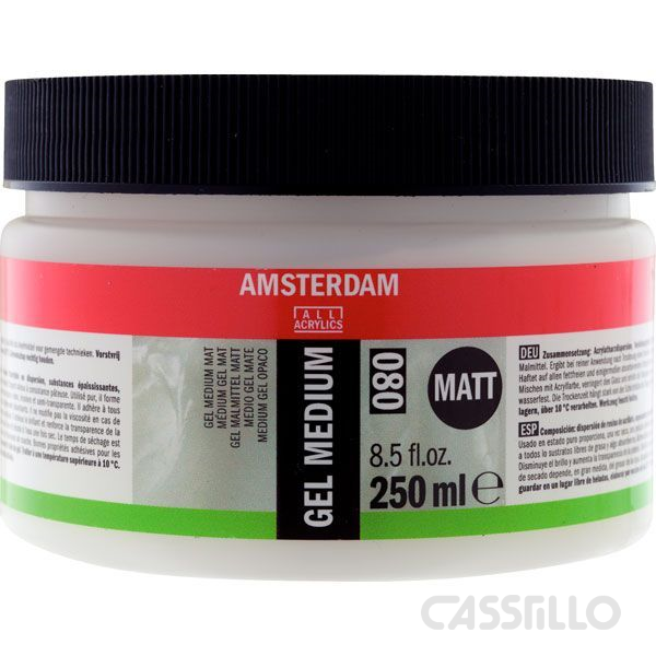 • Estos medios ofrecen una textura más nítida y pastosa y dan a tu obra, según el gel elegido, un acabado más brillante o más mate.